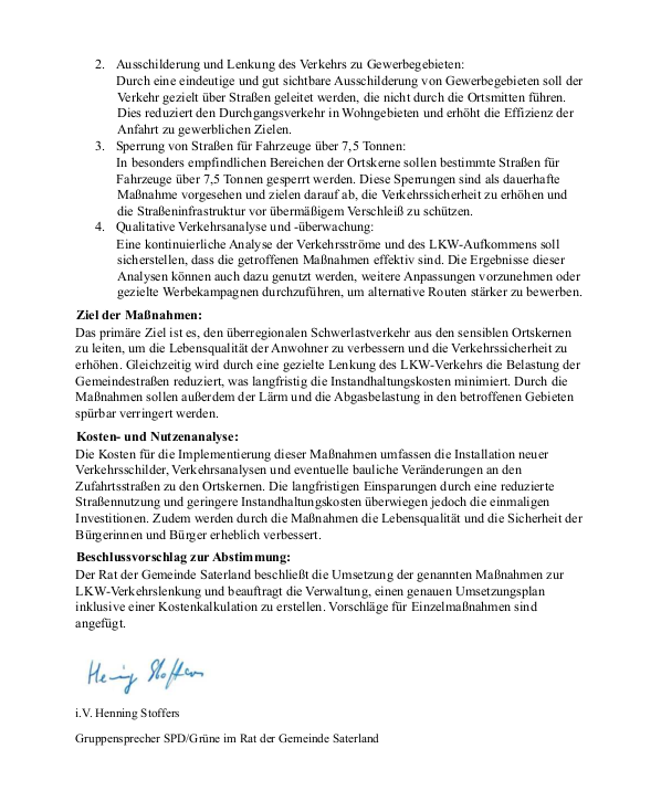Antrag zur Einführung einer LKW-Verkehrslenkung auf Gemeindestraßen